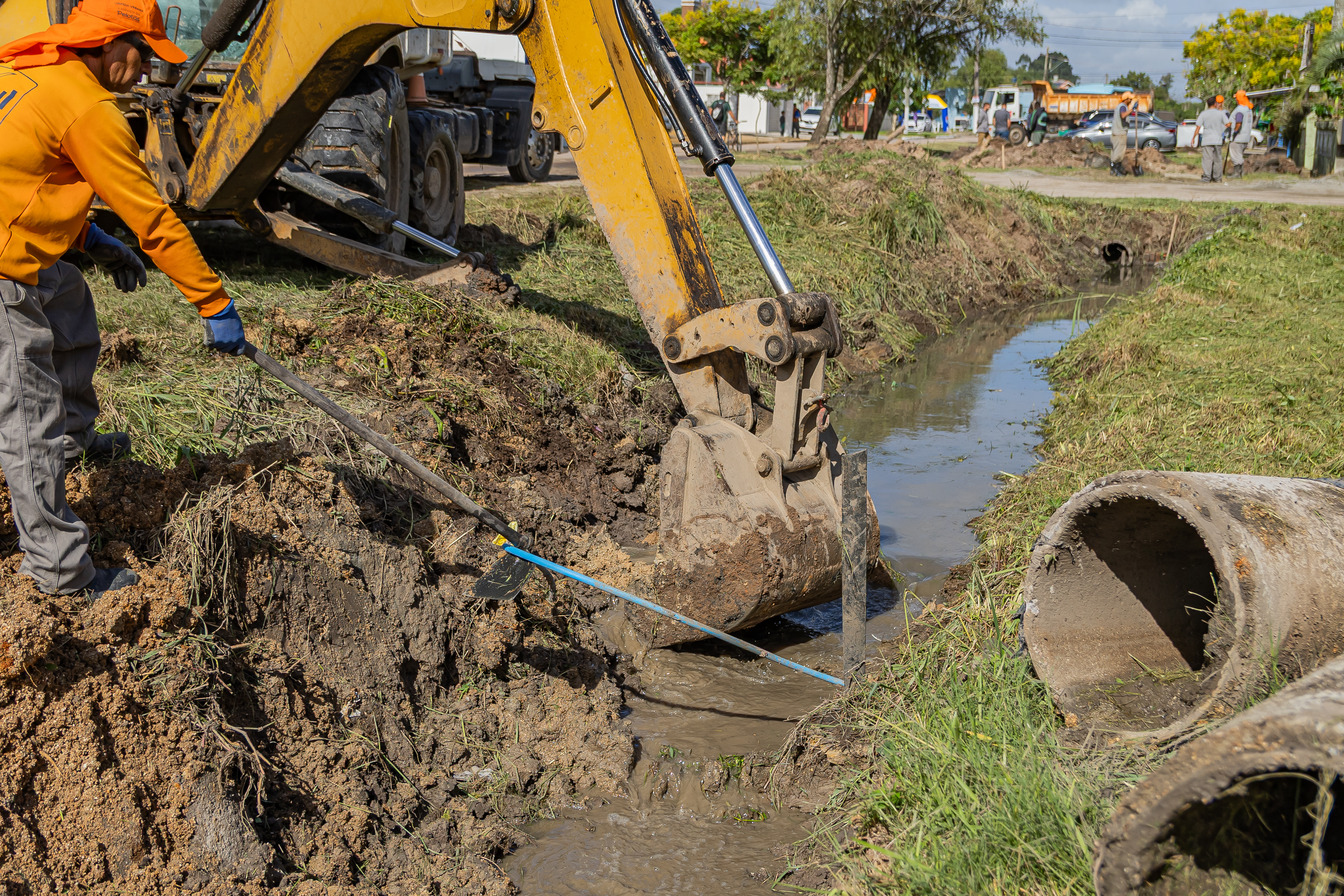 Serviço de drenagem com apoio de retroescavadeira desobstrui valeta no Sítio Floresta durante a segunda edição do Prefeitura em Ação, megamutirão de zeladoria promovido pelo governo municipal (Fotos: Volmer Perez/Secom)