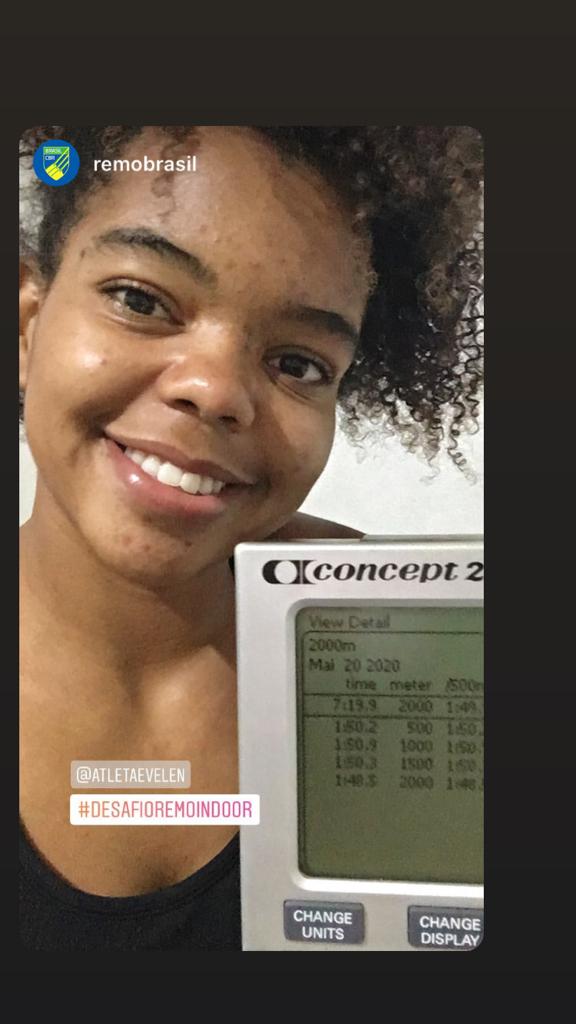 Evelen ficou em primeiro lugar no Feminino Júnior A do Desafio Remo Indoor 2020 - Foto: Reprodução redes sociais.