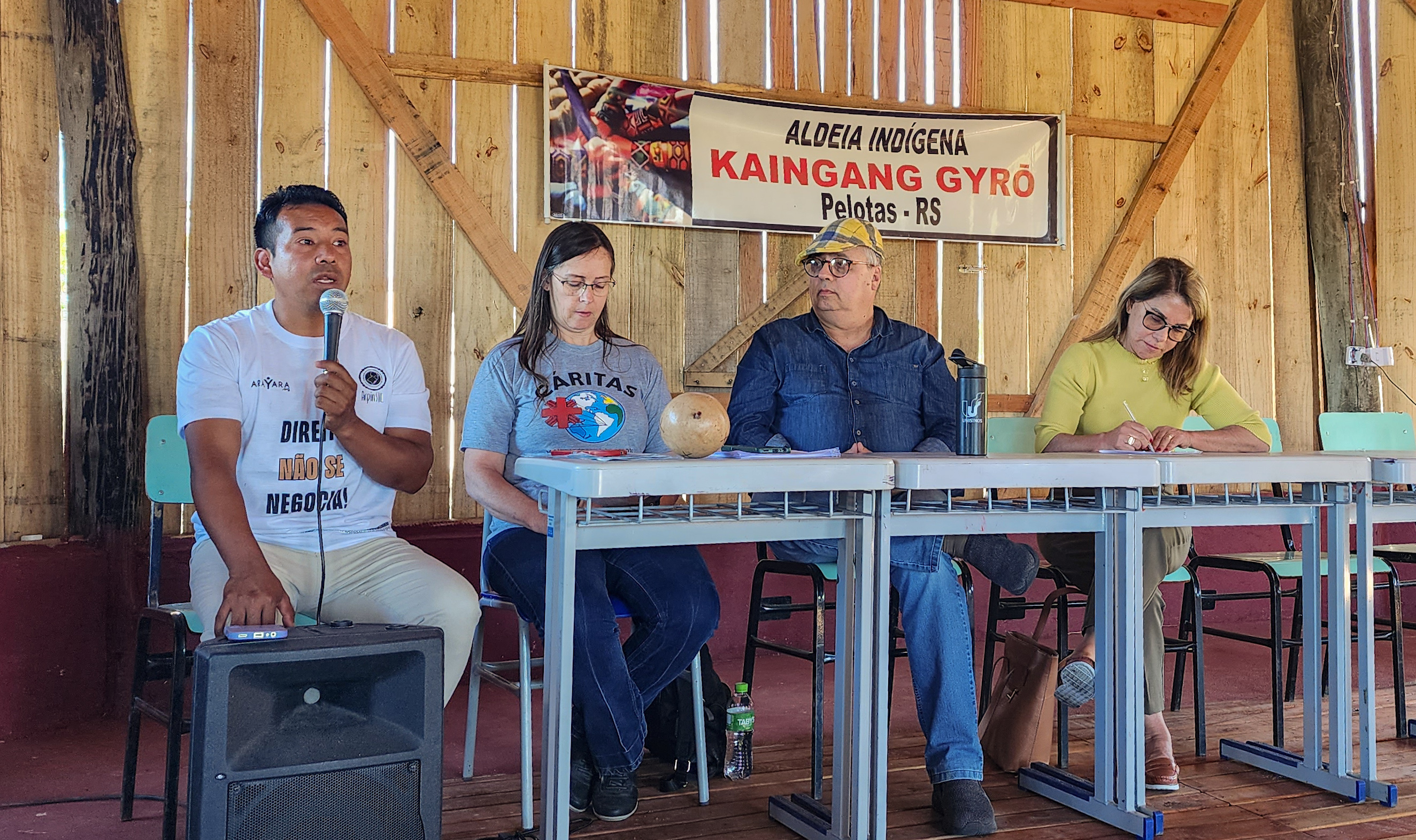 Roda de conversa realizada na aldeia indígena kaingang Gyró, na zona rural de Pelotas, dentro da programação da Conferência Sul sobre Mudanças Climáticas (Copsul), que na noite desta terça-feira lança o Plano de Resilência Climática de Pelotas em solenidade no IFSul (Fotos: Ricardo Bandar/Secom)