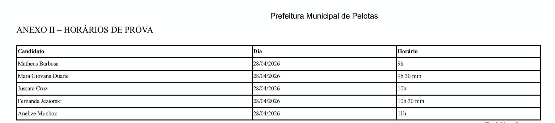 A prova didática ocorrerá no dia 28 de abril, na Sala de Coworking da Secretaria de Recursos Humanos (Serh). O endereço é rua General Osório, nº 918.