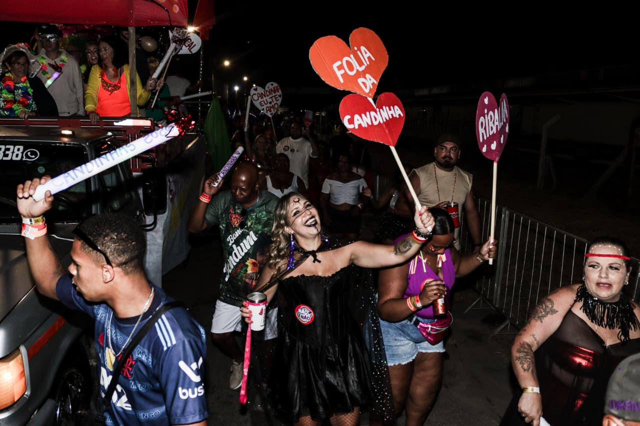 Os foliões do bloco burlesco Candinhas da Cerquinha desfilam na noite das campeãs, na programação de encerramento do Carnaval 2026 em Pelotas. Município voltou a fazer o evento na data oficial do país após 13 anos