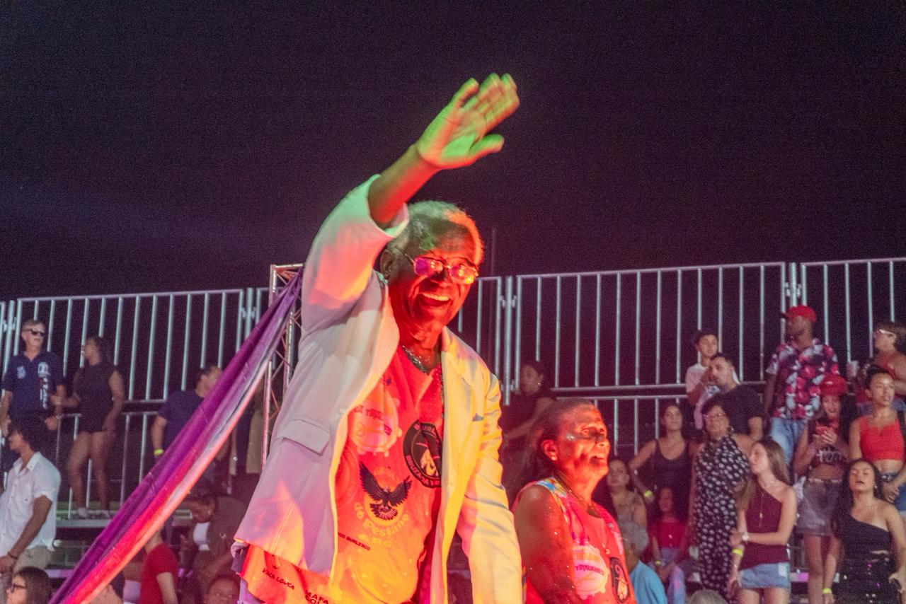 Sambará, à esquerda na imagem, nunca deixou de participar dos Carnavais e se consolida como uma das presenças mais marcantes da escola. Imagem - Manuela Santos/Secom