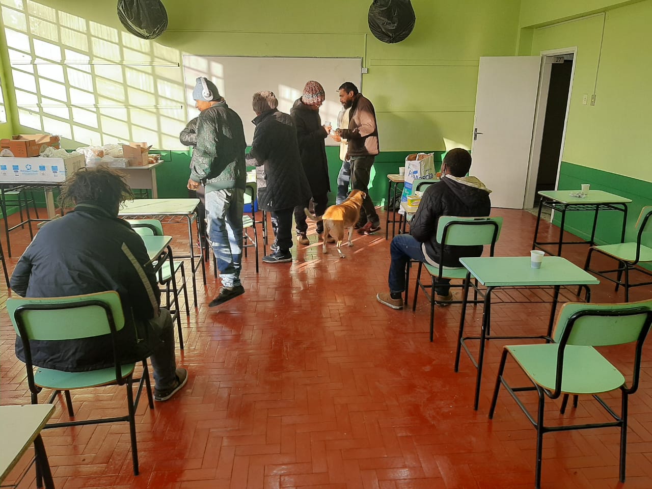 A frente fria chegou a Pelotas nesta terça-feira (27) e, com ela, foram abertas as portas do Colégio Municipal Pelotense para a realização do serviço organizado pela Prefeitura de acolhimento de pessoas em situação de rua e vulnerabilidade, e seus animais de estimação. A prefeita Paula Mascarenhas esteve no local, verificando o andamento do trabalho e acompanhando a chegada dos primeiros usuários. Eles e seus pets estavam sendo esperados com colchões, cobertores quentes, roupas e alimentos - com marmitas enviadas pelo Restaurante Popular -, além de muito cuidado e carinho por parte dos profissionais.