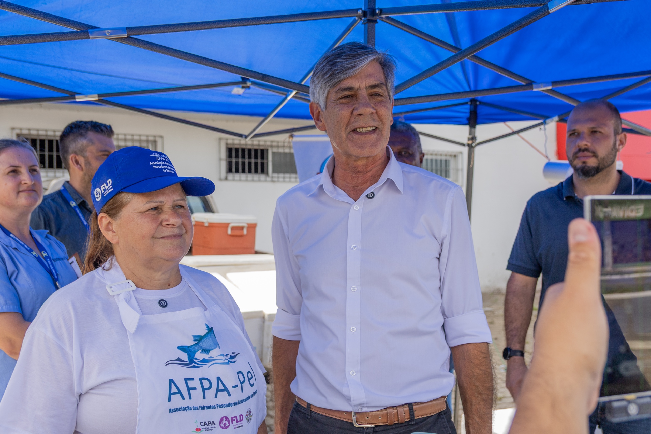 “A Feira do Pescador está em toda a cidade, é uma ótima oportunidade para prestigiar o pescado e os pescadores artesanais da nossa cidade”, disse o prefeito Fernando Marroni durante visita à banca da pescadora artesanal Eliane Constantino da Silva, localizada na avenida Salgado Filho, quase no cruzamento com avenida República do Líbano, na zona norte da cidade. A escolha não foi casual. Eliane está presente na Feira desde a sua primeira edição. Nunca sequer cogitou não participar. “É o nosso Natal”, compara ela. “Vendemos muito, para consumidores que infelizmente não têm o hábito de comer peixe regularmente, vale muito a pena.”