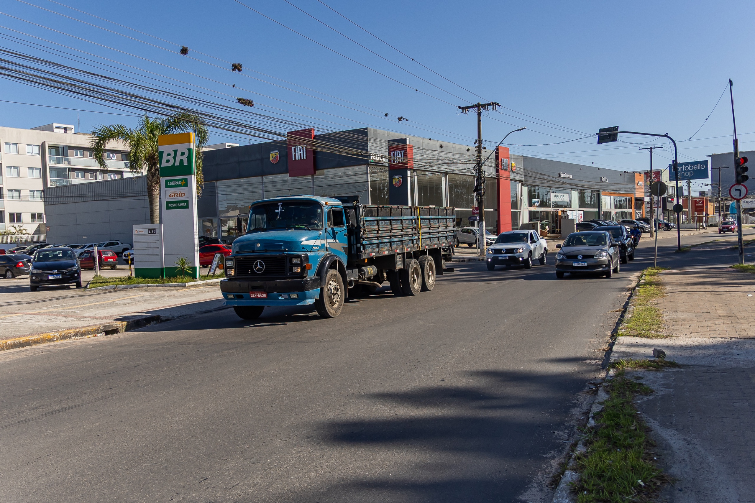 Veículo de carga circula pela avenida Fernando Osório, zona norte de Pelotas. Técnicos da Prefeitura desenvolvem atualmente um pré-projeto para dotar o município com um distrito logístico para caminhões e carretas (Fotos: Volmer Perez/Secom)